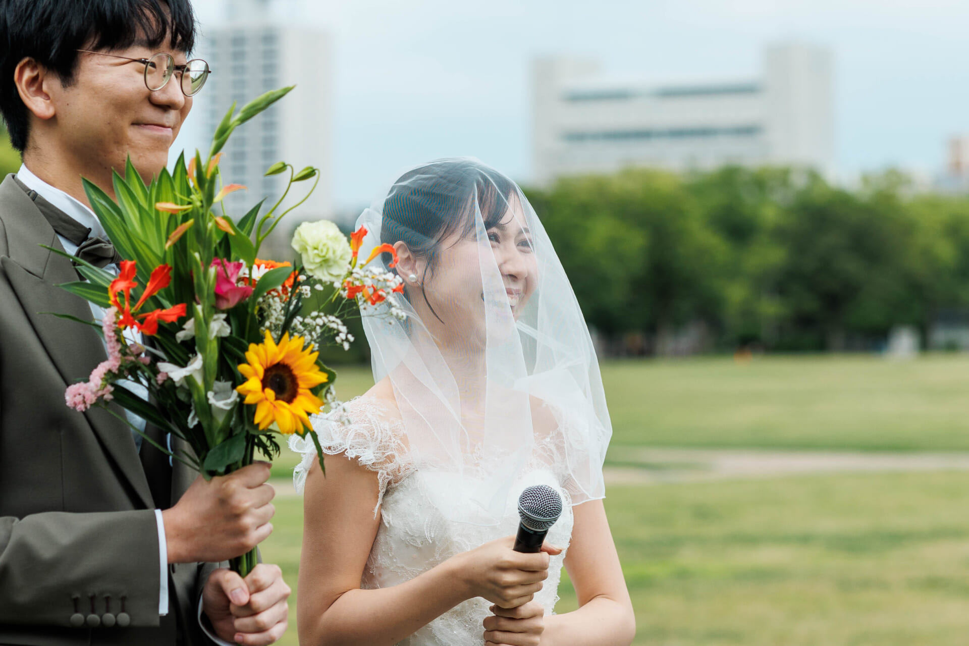 新婦様のことを心から大切に想い、その想いをまっすぐに表現される新郎様。いつもニコニコと笑顔で周りを明るくする、好奇心旺盛で可憐な新婦様。音楽という共通の趣味を持つ明るい空気感のおふたり。そんなおふたりが結婚式のテーマに選ばれたのは「Lead role ”主役”」。参列する全てのゲストの皆様が「主役」となる結婚式。ゲストとの、これからの関係性を作っていく時間にしたい。これまでお世話になった方々へ「今までありがとう、そしてこれからもよろしくね」という感謝の気持ちを伝えるための、大切なけじめの場。ゲストに自分たちの姿を見てもらうことで安心を届けたいという、想いを込められました。